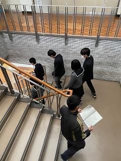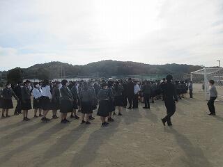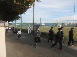 令和2年11月5日(木)「津波防災の日」に本渡校舎ではシェイクアウト訓練を実施しました。気象庁の訓練用緊急地震速報を放送し、地震発生時の安全確保行動訓練(まず低く⇒頭を守り⇒動かない)と、津波の発生を想定した避難行動訓練を行いました。