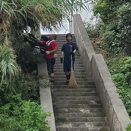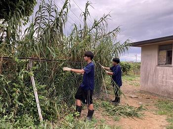 生徒たちが、練習に向かう通り道に草が覆いかぶさってきていたため、カマなどを使って草を刈らってくれました!(^^)!