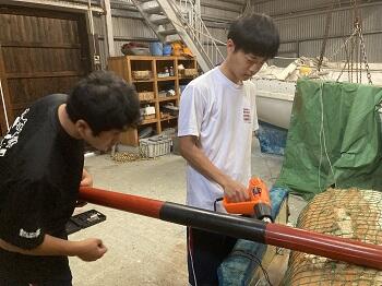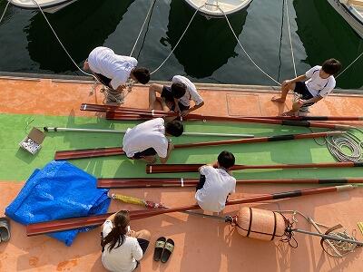 6月に行われる九州大会に備えて、オールのメンテナンスを行いました。いつも練習で使っているため、丁寧に仕上げを行いました。