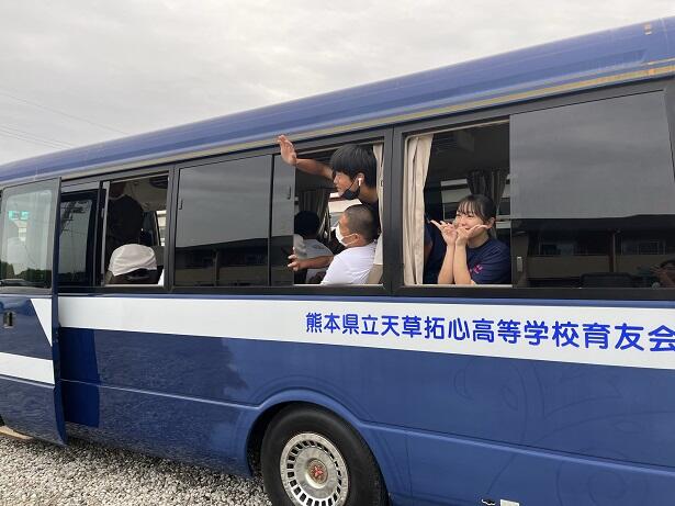カッター部は、6月13日・14日に鹿児島県枕崎市で開催される第47回九州地区水産・海洋高等学校カッターレース大会に向けて、13日朝、マリン校舎を出発しました。部員たちは、リラックスした様子でバスに乗り込み、見送りに駆けつけた仲間たちに手を振るなどしてマリン校舎を発ちました。良い報告を楽しみに待っています。ガンバレ!