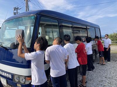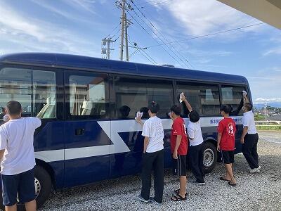 本日の部活動で、練習や遠征でお世話になったカッターやマイクロバス等を感謝の気持ちを込めて清掃いたしました。ひとつひとつの物を大切にし、長く使っていきたいと思います。