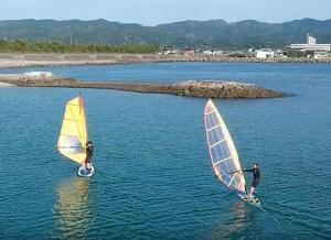 富岡海水浴場でカヌー、ウインドサーフィンをして、天草の自然を満喫しています。