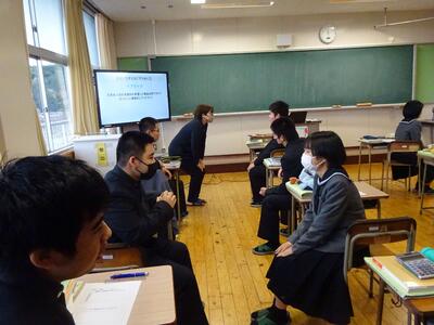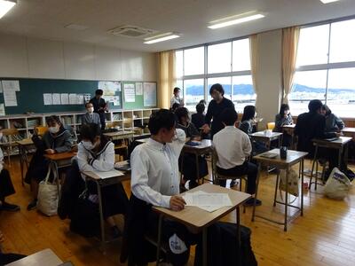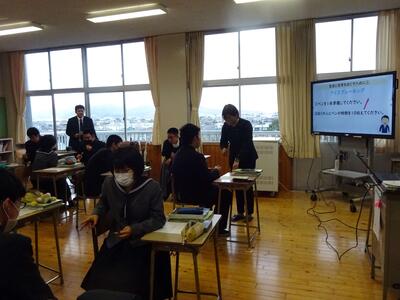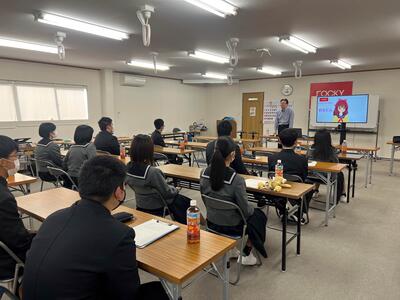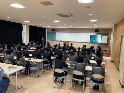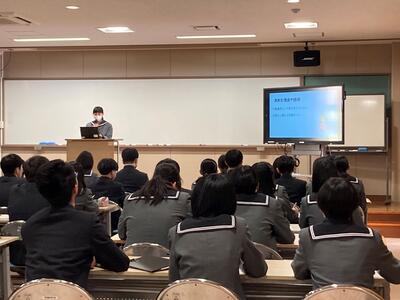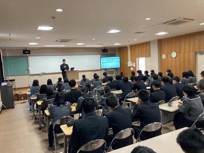 1、2年生は具体的な企業名や学校名、受験対策などメモをとり、発表を聴いていました。1年後や2年後の自分の姿をイメージできたようでした。