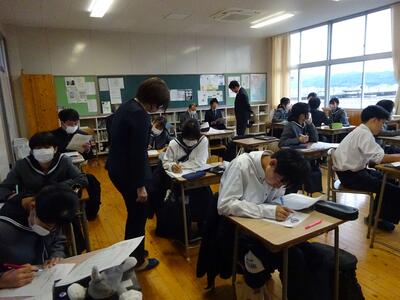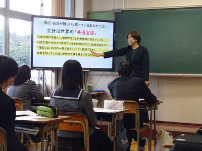 12月12日(火)、商業科1年生の簿記と2年生の財務会計Ⅰの授業を、球磨中央高校から派遣された指導教諭(スーパーティーチャー)に実施していただきました。①本校商業科教員の授業力向上と、②普段とは違う外部講師による授業で本校生徒の学習に対する興味・関心・意欲の向上につなげるという趣旨のもとに行われた特別授業です。