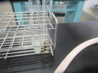 食品中にアミノ酸が含まれているかどうかを調べるため、実験を行いました。