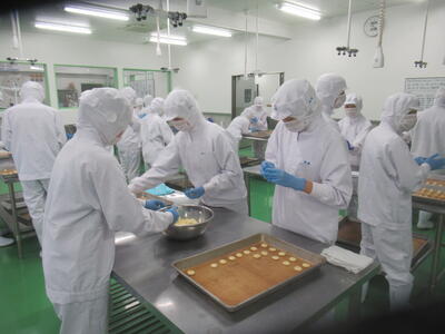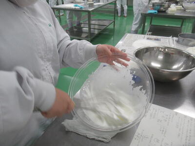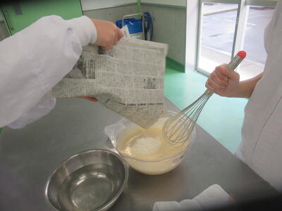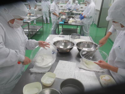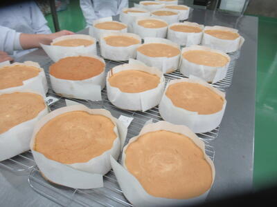 今回は1年生がスポンジケーキ製造に取り組みました。