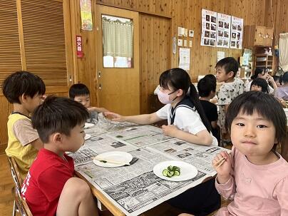 20日に実際にきゅうりを食べてもらいました。
