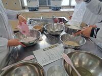 9日に3年生活科学科、18日に3年食品化学科の生徒がシチューとシフォンケーキを作りました。