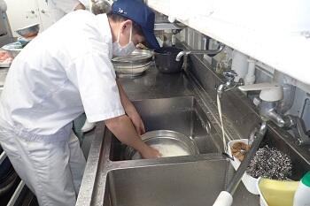 航海中は、日直業務として調理補助を担当する生徒の動きも次第に慣れてきており、簡単な作業については任される場面も増えてきました。船内生活を通して身につけた力を、今後は家庭でも活かし、さらに上達してほしいと考えています。