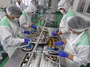 水槽からクルマエビを氷水へ移動します。選別・計量し、おがくずを入れた化粧箱に箱詰めします。