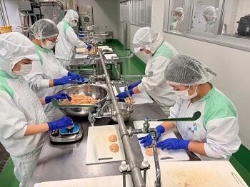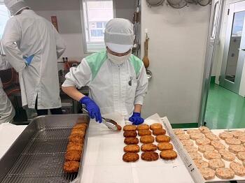 スケトウダラのすり身を使用し、玉ねぎ、にんじん、ごぼうなどの野菜をふんだんに加え、小判型に成形して製造しました。各工程を丁寧に行いながら、食品加工の基本的な技術について学びました。