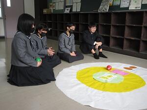 はじめに第2回交流会において共同学習で制作した展示物「苓北の四季」を使い、本校生徒による魚の種類当てクイズを行いました。その後行ったボッチャでは、点数に応じた質問しながら交流を深めました。ボッチャは、22対13で苓北支援学校のみなさんの圧勝でした!生徒たちは、「次に向けて、ボッチャの練習もしよう!」と意気込んでいました。次年度も交流できることを楽しみにしています。