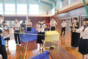 全体会を終え、2グループにわかれて苓北支援学校のみなさんが制作した「ホールインワンチャレンジ」を行いました。オンライン交流直前に少し練習をしていた本校生でしたが、狙った場所へのカップインには苦戦…交流はとても楽しかったようです。支援学校のみなさんの修学旅行での買い物エピソードや本校マリン祭の食品バザーなど、お互いの学校の授業や行事の情報を交換しました。
