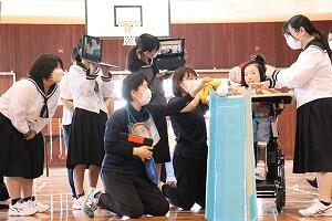 普通科総合コースの1・2・3年生は、本校体育館にて苓北支援学校高等部との交流及び共同学習を行いました。