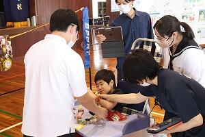当日は、本校生徒がこの日のために準備したクイズとボッチャを通して交流をし、ボッチャの途中には、点数に応じてグータッチや写真撮影などをして触れ合っていました。あっという間に交流時間を過ぎ、お見送りでは名残り惜しそうに何度も手を振っていました。次回の交流も楽しみです。