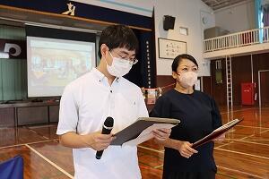 1位のペアには、手作りのメダルをプレゼント! 司会も大活躍!