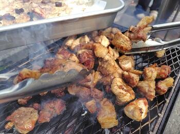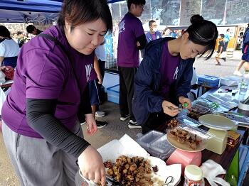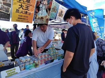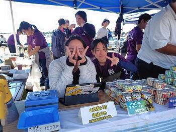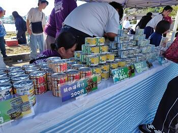 本渡校舎で育てた「天草大王」を使用した炭火焼と、マリン校舎食品系の実習製品である缶詰を販売しました。