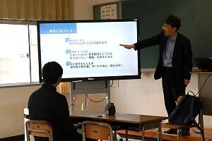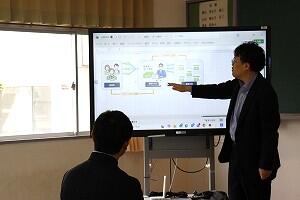 3年 情報ビジネス類型「商業 総合実践」の授業では、九州みらいインベストメンツから日髙ファンドマネージャーを講師に迎え「株式投資教室」の出前授業が開かれました。