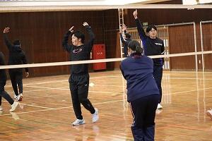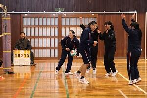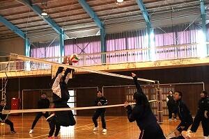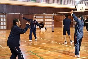 生徒たちは日頃から学年を越えてさまざまな場面で活動しており、声をかけあいながらボールをつなぎました。得点すると大盛り上がり。少し失敗してしまった時も「大丈夫」「次はできる」と励まし合っていました。先生たちとバレーができたことに大満足の生徒たちでした。