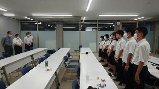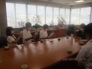 市長室にまねかれ馬場市長に本校SBPの活動を紹介させていただき、馬場市長から私たちの活動に対して激励の言葉を頂きました。