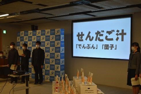 発案から試作、試作して改良、そして試作また改良とたくさんの時間とエネルギーをかけて製造された防災用非常食「せんだご汁」を「非常食だから食べられない方がいいです。この製品を通して防災意識が高まってほしいです。」と語る生徒達はとても素敵でした。