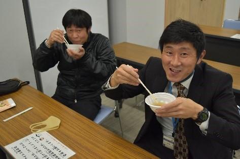 来ていただいた方に製品のせんだご汁の試食もしていただきました!