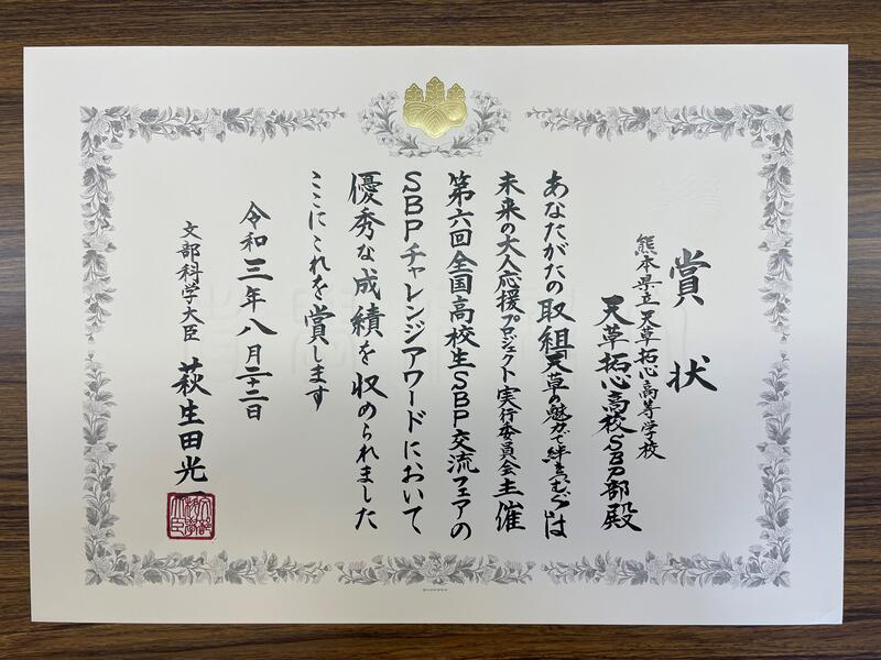 【本渡校舎】第6回全国高校生SBP交流フェア 文部科学大臣賞受賞!