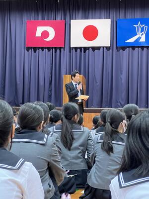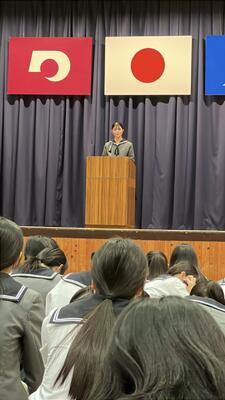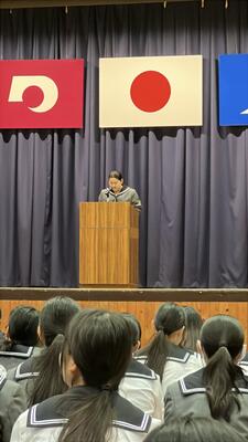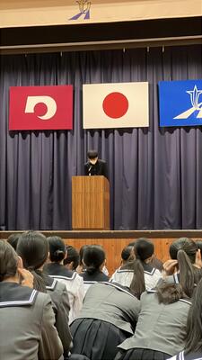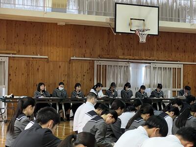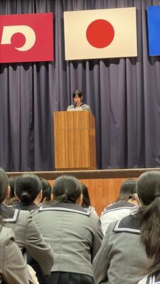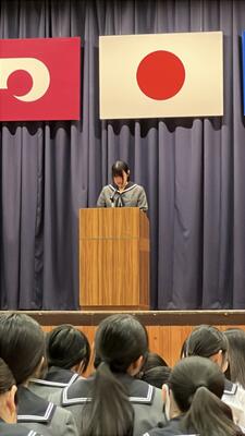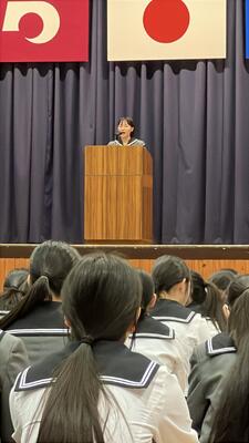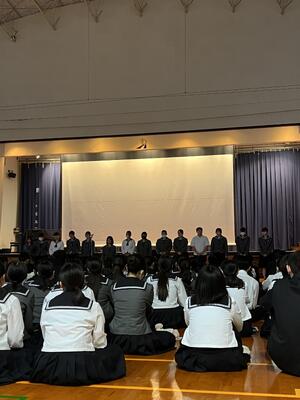 また、冬休みを迎えるにあたり、交通事故やけがに十分注意し、全員が元気な姿で3学期の始業式に再会できるようにとの呼びかけもありました。生徒たちは校長先生の言葉に真剣に耳を傾け、2学期を振り返るとともに、新たな年に向けて気持ちを引き締める機会となりました。