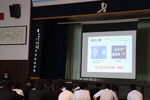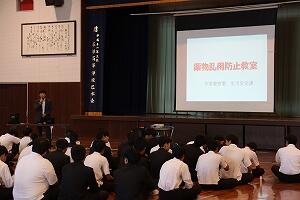 天草警察署の署員の方を講師に迎え、「薬物乱用防止講演会」を実施しました。薬物乱用が心身の健康や社会に与える深刻な影響、未成年の飲酒・喫煙が身体へ与える影響についてスライドや動画視聴を通して教えていただきました。またSNSトラブルにも巻き込まれないよう注意喚起がありました。