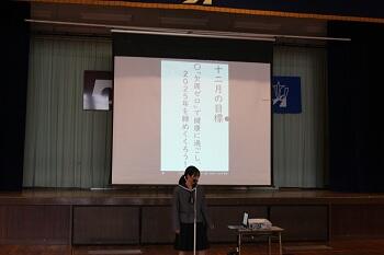 最後に、生徒保健委員会の代表が「薬物、お酒、たばこの危険性を知ることができた。自分自身や友人、周囲の人を守る行動をしたい。」とお礼の言葉を述べました。