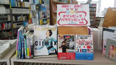 冬季オリンピックにまつわる本や雑誌などを展示しました。選手のオリンピックにかける思いなどを読んでみませんか?