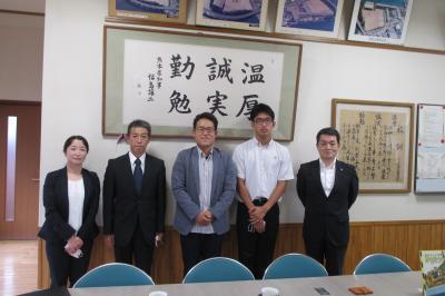 熊本県教育会館の杉田正幸理事長様をはじめ、ご担当の伊與田健太郎様にお越しいただき、寄贈式が行われました。