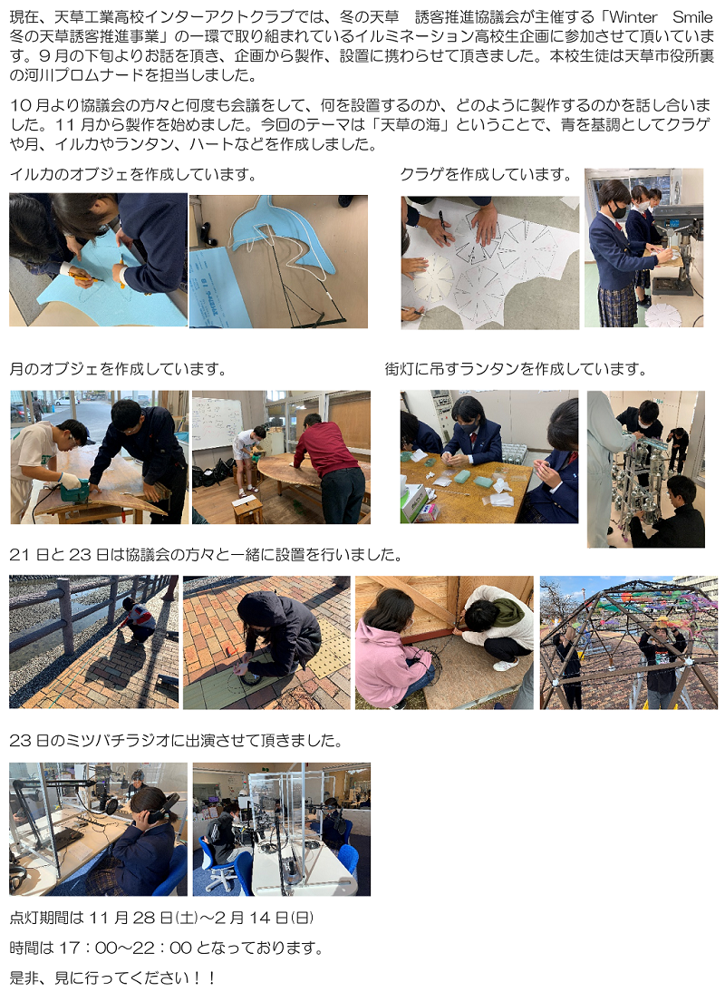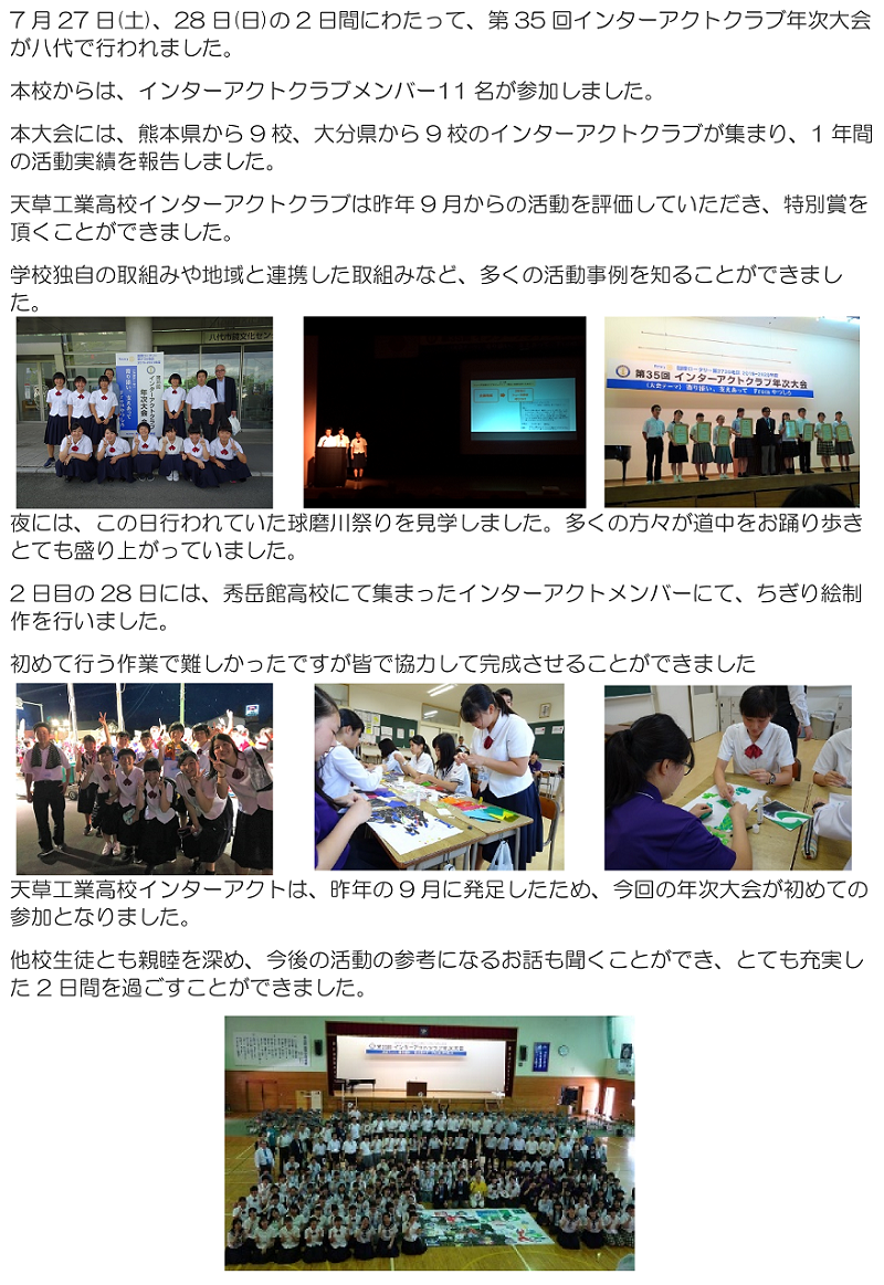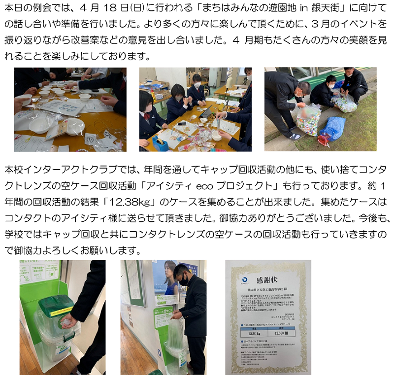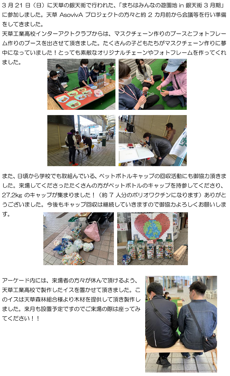 インターアクトクラブの記録 全ての記事 全ての記事 カテゴリ アーカイブ 2025年12月 (0) 2025年11月 (0) 2025年10月 (0) 2025年9月 (0) 2025年8月 (0) 2025年7月 (0) 2025年6月 (0) 2025年5月 (0) 2025年4月 (0) 2025年3月 (0) 2025年2月 (0) 2025年1月 (0) 2024年12月 (0) 2024年11月 (0) 2024年10月 (0) 2024年9月 (0) 2024年8月 (0) 2024年7月 (0) 2024年6月 (0) 2024年5月 (0) 2024年4月 (0) 2024年3月 (0) 2024年2月 (0) 2024年1月 (0) 2023年12月 (0) 2023年11月 (0) 2023年10月 (0) 2023年9月 (0) 2023年8月 (0) 2023年7月 (0) 2023年6月 (0) 2023年5月 (0) 2023年4月 (0) 2023年3月 (0) 2023年2月 (0) 2023年1月 (0) 2022年12月 (0) 2022年11月 (1) 2022年10月 (0) 2022年9月 (0) 2022年8月 (1) 2022年7月 (0) 2022年6月 (2) 2022年5月 (0) 2022年4月 (1) 2022年3月 (0) 2022年2月 (0) 2022年1月 (1) 2021年12月 (2) 2021年11月 (4) 2021年10月 (1) 2021年9月 (2) 2021年8月 (2) 2021年7月 (3) 2021年6月 (3) 2021年5月 (1) 2021年4月 (3) 2021年3月 (2) 2021年2月 (2) 2021年1月 (3) 2020年12月 (2) 2020年11月 (2) 2020年10月 (0) 2020年9月 (0) 2020年8月 (0) 2020年7月 (2) 2020年6月 (0) 2020年5月 (0) 2020年4月 (0) 2020年3月 (0) 2020年2月 (0) 2020年1月 (0) 2019年12月 (0) 2019年11月 (2) 2019年10月 (1) 2019年9月 (0) 2019年8月 (0) 2019年7月 (1) 2019年6月 (2) 2019年5月 (0) 2019年4月 (0) 2019年3月 (1) 2019年2月 (0) 2019年1月 (1) 50件 1件 5件 10件 20件 50件 100件 【インターアクトクラブ】服のチカラプロジェクト活動について 投稿日時 : 2022/11/29 作成者2 【インターアクトクラブ】第38回年次大会が行われました。 投稿日時 : 2022/08/01 作成者2 【インターアクトクラブ】まちはみんなの遊園地6月期 投稿日時 : 2022/06/20 学校サイト管理者 【インターアクトクラブ】ペットボトルキャップをイオンへ 投稿日時 : 2022/06/03 学校サイト管理者 【インターアクトクラブ】全国大会に参加 投稿日時 : 2022/04/25 学校サイト管理者 【インターアクトクラブ】1月19日の活動報告 投稿日時 : 2022/01/20 学校サイト管理者 【インターアクトクラブ】まちはみんなの遊園地12月期 投稿日時 : 2021/12/20 学校サイト管理者 【インターアクトクラブ】12月8日の活動報告 投稿日時 : 2021/12/08 学校サイト管理者 【インターアクトクラブ】まちはみんなの遊園地11月期 投稿日時 : 2021/11/22 学校サイト管理者 【インターアクトクラブ】11月10日の活動報告 投稿日時 : 2021/11/11 学校サイト管理者 【インターアクトクラブ】11月2日の活動報告 投稿日時 : 2021/11/02 学校サイト管理者 【インターアクトクラブ】服のチカラプロジェクト! 投稿日時 : 2021/11/01 学校サイト管理者 【インターアクトクラブ】まちはみんなの遊園地10月期 投稿日時 : 2021/10/25 学校サイト管理者 【インターアクトクラブ】9月15日の活動報告 投稿日時 : 2021/09/17 学校サイト管理者 【インターアクトクラブ】RKKラジオ取材 投稿日時 : 2021/09/17 学校サイト管理者 【インターアクトクラブ】オリジナルスタンプの製作 投稿日時 : 2021/08/20 学校サイト管理者 【インターアクトクラブ】ペットボトルキャップをイオンへ 投稿日時 : 2021/08/10 学校サイト管理者 【インターアクトクラブ】まちはみんなの遊園地7月期 投稿日時 : 2021/07/21 学校サイト管理者 【インターアクトクラブ】新旧交代式修了証書の授与 投稿日時 : 2021/07/14 学校サイト管理者 【インターアクトクラブ】まちはみんなの遊園地7月期も参加します! 投稿日時 : 2021/07/14 学校サイト管理者 【インターアクトクラブ】天草市市政だより9月号特集記事企画に参加 投稿日時 : 2021/06/23 学校サイト管理者 【インターアクトクラブ】まちはみんなの遊園地6月期 投稿日時 : 2021/06/22 学校サイト管理者 【インターアクトクラブ】SDGs学習会 投稿日時 : 2021/06/10 学校サイト管理者 【インターアクトクラブ】ペットボトルキャップをイオンへ 投稿日時 : 2021/05/06 学校サイト管理者 【インターアクトクラブ】4月21日の活動報告 投稿日時 : 2021/04/22 学校サイト管理者 【インターアクトクラブ】まちはみんなの遊園地4月期 投稿日時 : 2021/04/20 学校サイト管理者 【インターアクトクラブ】4月7日の活動報告 投稿日時 : 2021/04/08 学校サイト管理者 【インターアクトクラブ】まちはみんなの遊園地3月期 投稿日時 : 2021/03/22 学校サイト管理者 【インターアクトクラブ】3月17日の活動報告 投稿日時 : 2021/03/18 学校サイト管理者 【インターアクトクラブ】2月24日の活動報告 投稿日時 : 2021/02/24 学校サイト管理者 【インターアクトクラブ】絵馬及び焼き印の贈呈式 投稿日時 : 2021/02/08 学校サイト管理者 【インターアクトクラブ】1月27日の活動報告 投稿日時 : 2021/01/27 学校サイト管理者 【インターアクトクラブ】天草Asovivaプロジェクトの方々との会議 投稿日時 : 2021/01/21 学校サイト管理者 【インターアクトクラブ】1月20日の活動報告 投稿日時 : 2021/01/21 学校サイト管理者 【インターアクトクラブ】ペットボトルキャップをイオンへ 投稿日時 : 2020/12/23 学校サイト管理者 【インターアクトクラブ】12月23日の活動報告 投稿日時 : 2020/12/23 学校サイト管理者 【インターアクトクラブ】イルミネーション高校生企画 投稿日時 : 2020/11/24 学校サイト管理者 【イ