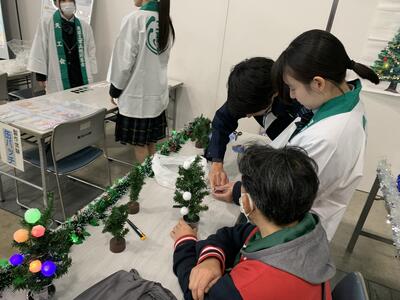 手作り缶バッヂ作成体験 手作りクリスマスツリー作成体験