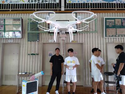 9月7日(土)に県立高校One Teamプロジェクト事業の一環として、天草市内高校(天草高校、天草高校倉岳校、天草拓心高校本渡校舎、天草工業高校)生徒がドローンスクール岳(株式会社「岳」)で実技講習会を行いました。農林業および建設産業での活用法やICT技術を駆使された実演および映像等を交えながらの講習に、性能の高さや可能性を感じ、より興味・関心を抱くものとなりました。
