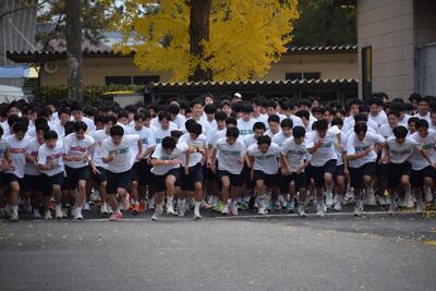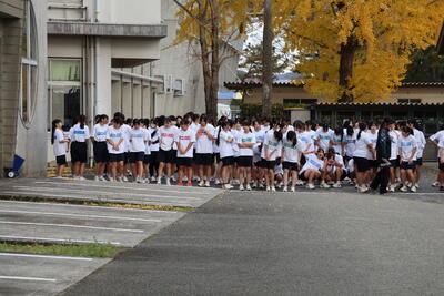 長距離走大会が実施されました。天候は曇、最高気温12℃で、比較的安定した気候の中スタートしました。男子は20kmを3時間以内に、女子は10kmを1時間30分以内に走ります。