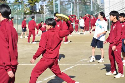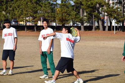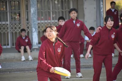 3年生最後のクラスマッチです。今回は、先日までの雨の影響によるグラウンド状況の悪さとインフルエンザの感染拡大防止を考慮して、短縮した形で実施いたしました。競技もドッヂビーとフィッシングの2競技で開催されました。