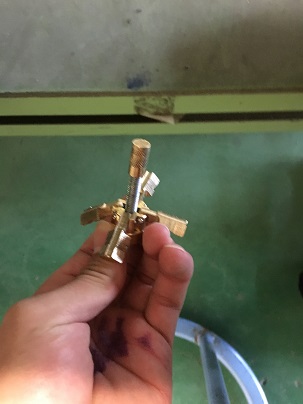 目を付けたのが、新型コロナウイルス感染症対策としての手指消毒です。街中どこに行ってもアルコール消毒が必要となっています。中には、自らの手でプッシュしてアルコール消毒をするものもあり、もっと清潔にできないかと疑問が残りました。そこで、スタンド式のフットレバー(足踏み)タイプアルコール消毒をする台を製作することになり、中学校へ寄贈することとしました。