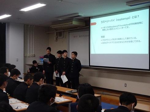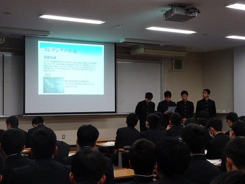 1月11日(金)の5、6時間目に本校視聴覚室にて電気科3年生による課題研究発表会を行いました。