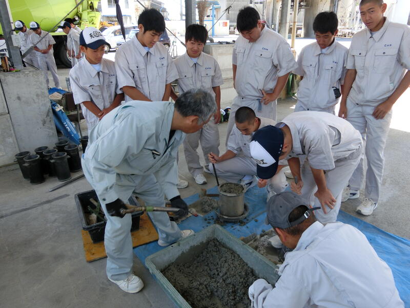 次に、コンクリート工場の見学をしました。コンクリートのスランプ試験や空気量測定試験を体験することで、専門知識を高めることができました。