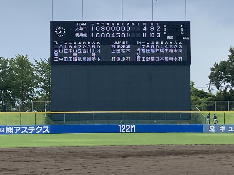 本日8月19日(土)県営八代球場で第60回城南地区高等学校野球夏季大会の1回戦が行われ、秀岳館高校と対戦しました。