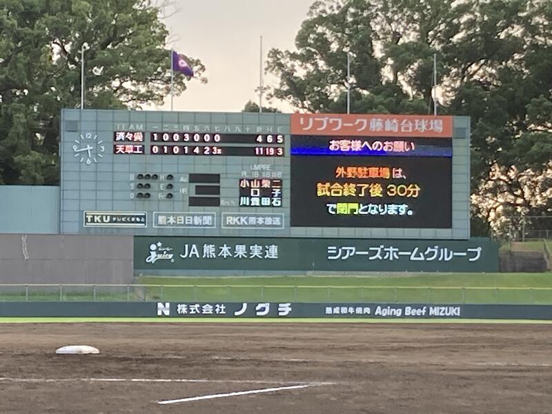 本日9月21日(木)に第153回九州地区高等学校野球熊本大会の2回戦がリブワーク藤崎台球場で行われ、熊本国府高校と対戦しました。