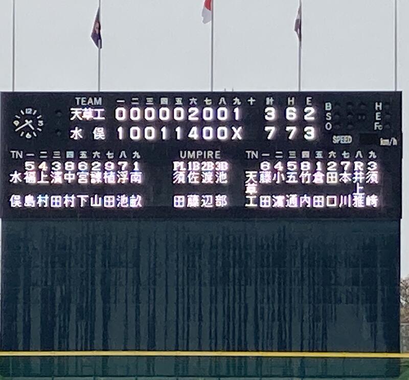 本日4月9日(日)県営八代球場で第59回城南地区高等学校野球春季大会の3回戦が行われ、水俣高校と対戦しました。