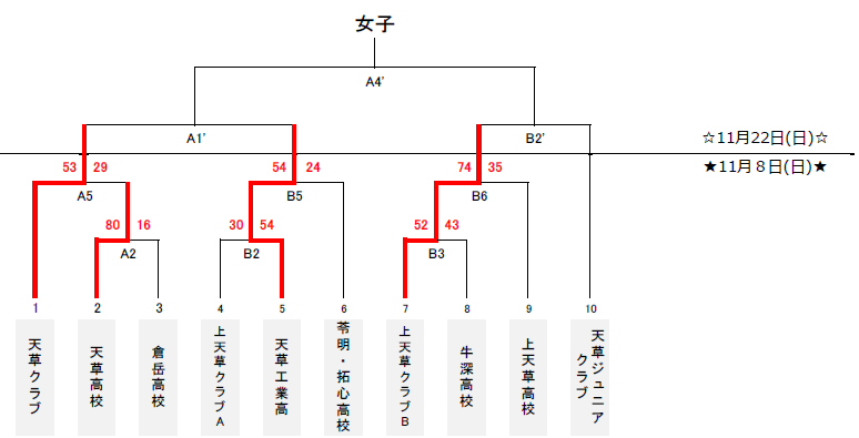 平成27年度天草郡市会長杯秋季バスケットボール大会結果