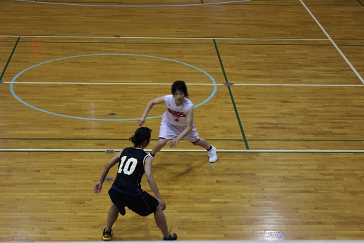 今回の交流はバスケットボール部が取組んでいる「リズムトレーニング」を教えました。