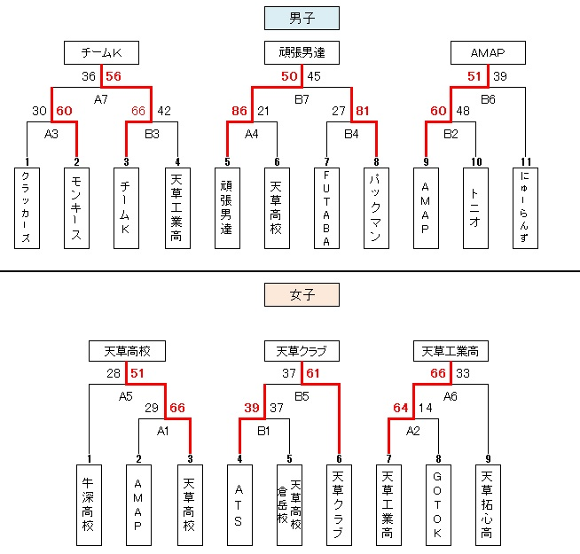 決 勝 天草工業 50-64 天草クラブ 準優勝