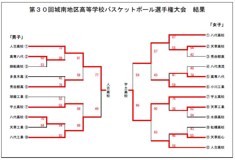 2回戦 天草工業 80-49 有明 2回戦 天草工業 30-70 尚絅