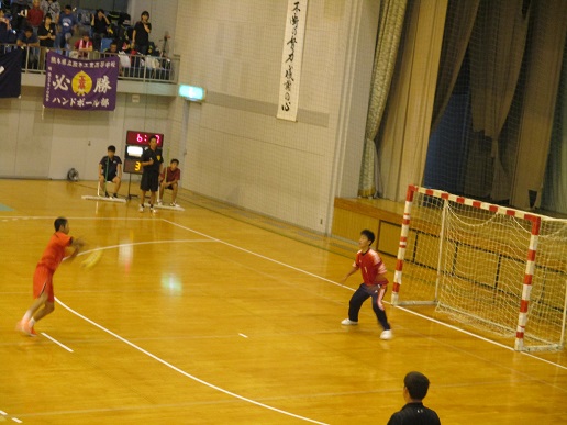 本校から機械科3年生の2名、福岡君(ピポッドプレーヤー)と山田君(ゴールキーパー)がハンドボール少年男子の代表として出場しました九州ブロック国体(8月20、21日で開催)において熊本県が代表権を勝ち取り、10月に開催される本国体への出場を決めました。