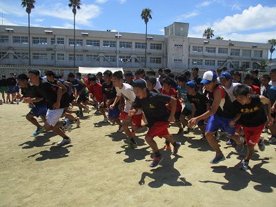 本校グラウンドにて、天草合宿練習会が8月5日(金)から8月8日(月)の4日間行われました。熊本県内から21校約500人の生徒が参加しました。他校の生徒とともに切磋琢磨することで、個人能力の成長だけでなく、チームさらには県内のレベルアップにつながったと思います。