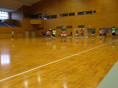 天工ハンドボール部は、4ヶ月にわたる天井改修工事の終わったピカピカの体育館で